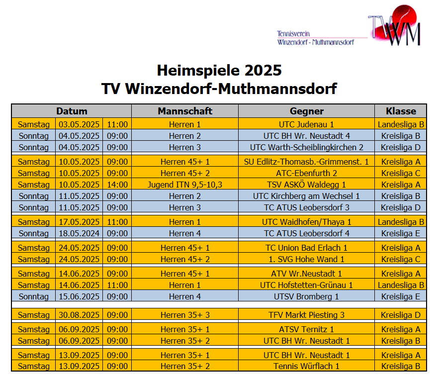 Die angeführten Mannschaften sind auf die NÖTV Seite verlinkt. Einfach auf die jeweilige Mannschaft klicken.